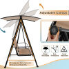 Enjoy outdoor leisure time with your beloved one with our 2-person patio swing seat! By adjusting the canopy, you can always find an appropriate angle for a better shading effect. What's more, the breathable fabric seat enables you to feel cool on hot days, driving away fatigue for coziness. The sitting area is large enough for 2 people at the same time. With the solid support of the sturdy metal frame, this outdoor patio swing bench has a strong weight capacity of 270 kg. It is up to you where to put the outdoor canopy swing loveseat. Thus, a comfortable seat is available in the garden, backyard or balcony.