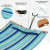 Curved Wood Spreader Bar: The outdoor hammock measures 320cm long with two solid beech wood spreader bars. Designed with curved ergonomic design, spreader bars are stable and not easy to flip over, offering you a comfy nap without the anxiety of falling down. The countersunk spreader bar holes can reduce the friction between the rope and the wood.