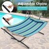 Adjustable O-ring Steel Chains: There are two 27cm steel chains that can connect to cotton ropes at each side of the hammock. It is convenient to set your preferred height by hooking the certain chain section. You can attach the hammock to a hammock stand or hang it between two trees to your optimal hanging height.