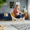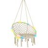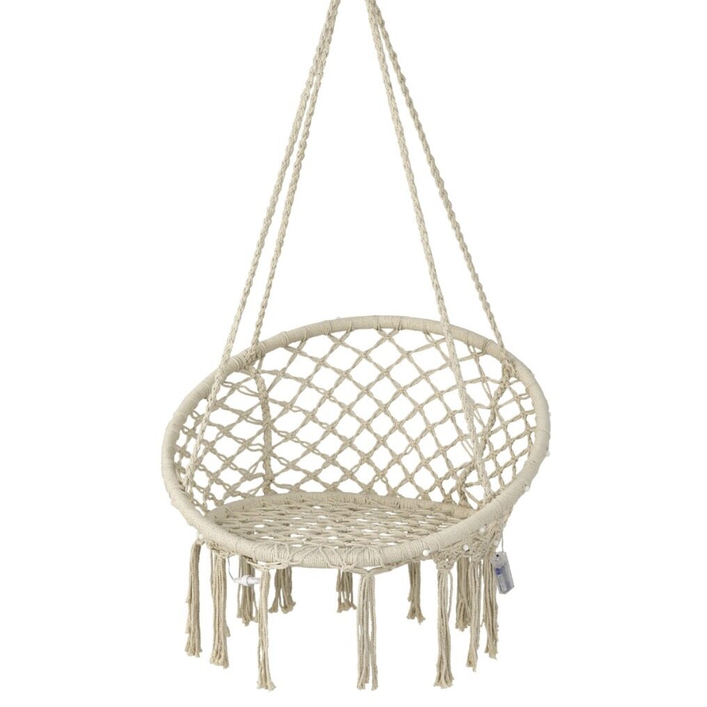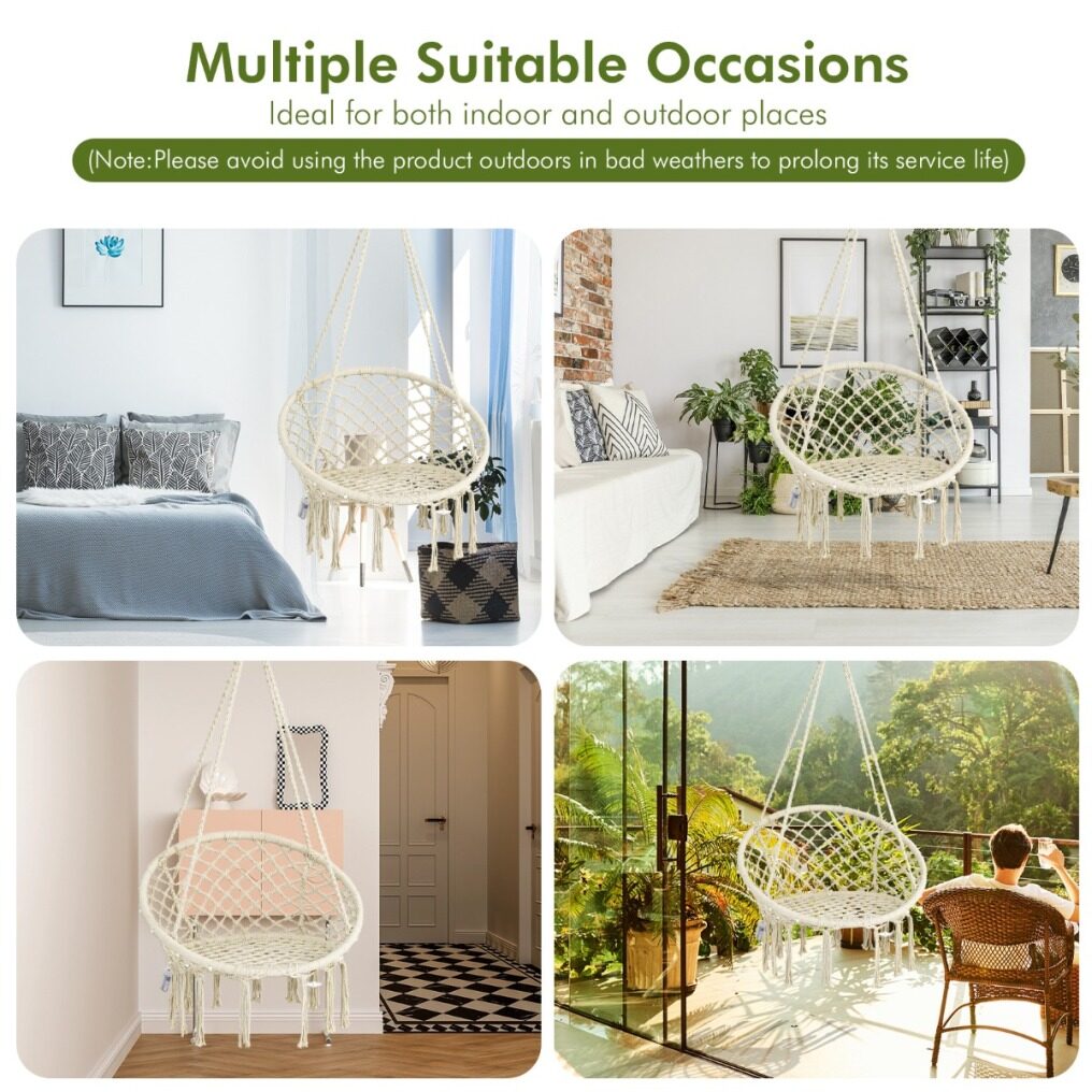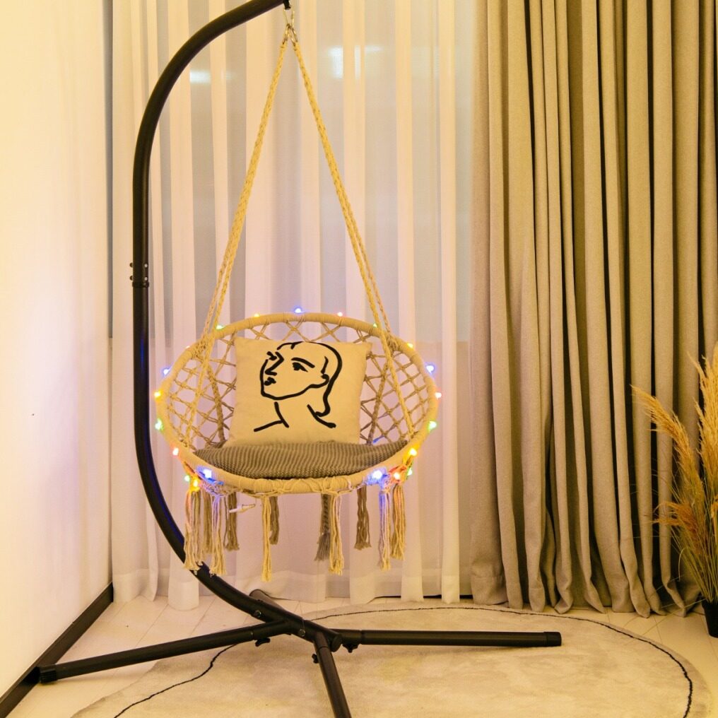 Whether you decide to hang this macrame swing on the patio, porch, backyard, or indoors, it will always fit because it is available in 2 hanging methods (single hook method and double hook method). After that, the sturdy O-rings, durable hand-woven cotton ropes, and heavy-duty steel frame make this hanging chair stable enough to support you. If you want to let this hammock chair swing become more beautiful, just turn on the colorful LED lights. Therefore, you can get a warm atmosphere while relaxing.