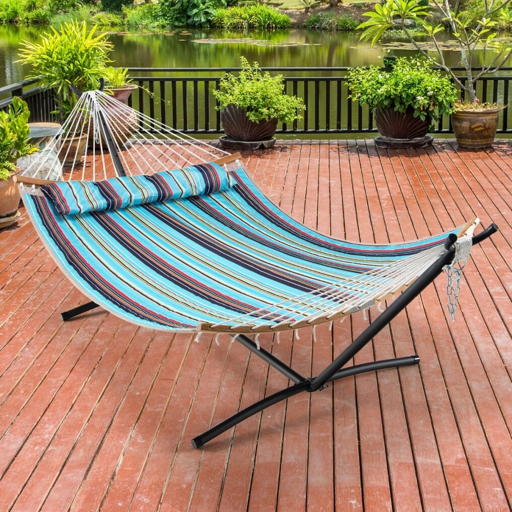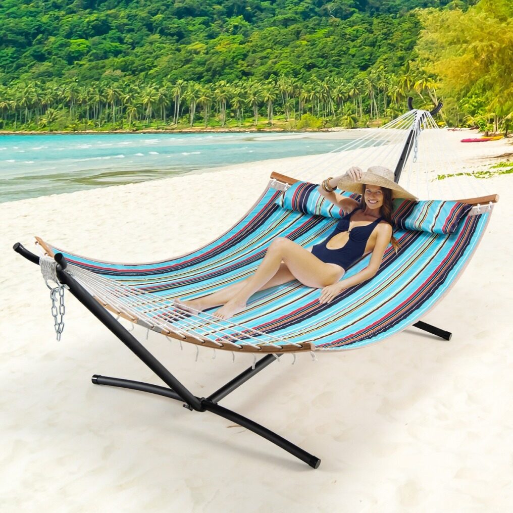 Up to 2 adults can have a rest on the hammock stand at the same time