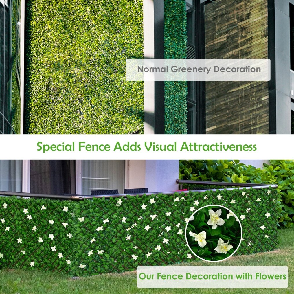 ● Dense Leaves for Privacy: Made up of 412 faux leaves, 60 branches and 40 little silk flowers, the expandable hedge is compact enough to block out harsh sunlight. Besides, it can be used as a privacy screen panel to provide more privacy from the outside in a natural way for your interior places.