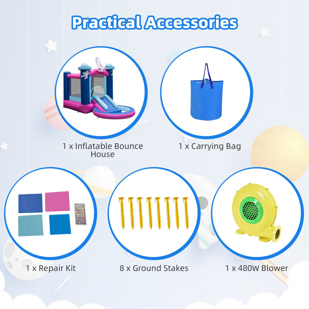 ● Unique Space-themed Bounce House: The combination of space-themed design, unique patterns and rich colors make the inflatable castle more attractive, making it an ideal gift for your children any time of the year. Plus, the bounce house boasts great adaptability, which can be used in party, park, daily entertainment, etc.