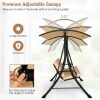 Premium Adjustable Canopy: Equipped with a top canopy that is made of sunproof and waterproof polyester fabric, this porch swing allows you to relax in the shade without scorching sunlight. What's more, you can turn the knob to adjust the angle of the canopy from 0 to 240°, maximizing the shading area for more comfort.