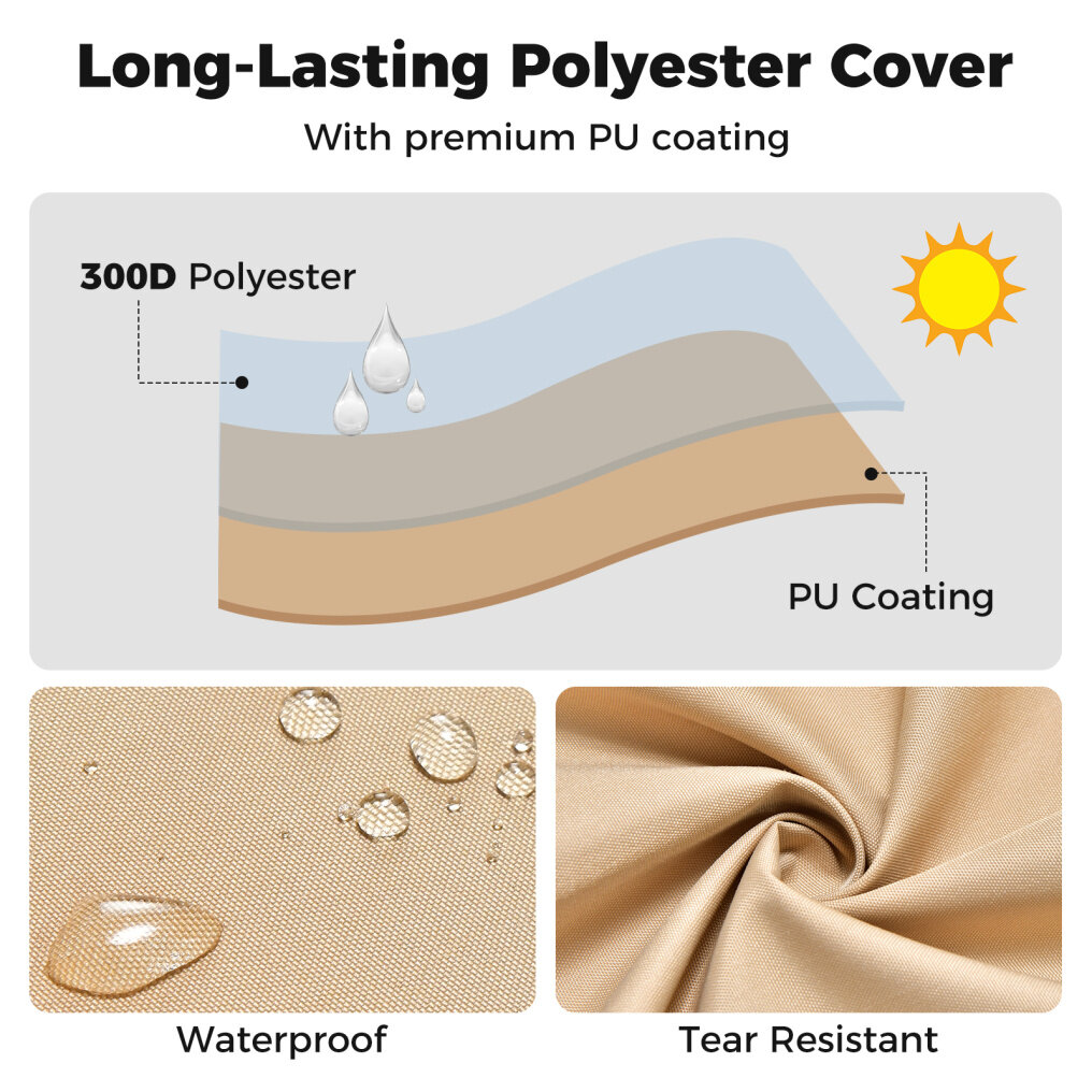 ● High Wind Resistance: In order to resist strong wind, the safety buckle is provided. You can fit the heavy duty patio sofa cover tightly by adjusting and locking the safety buckles to the legs of your outdoor furniture. What's more, the equipped drawstring help tighten around the bottom.