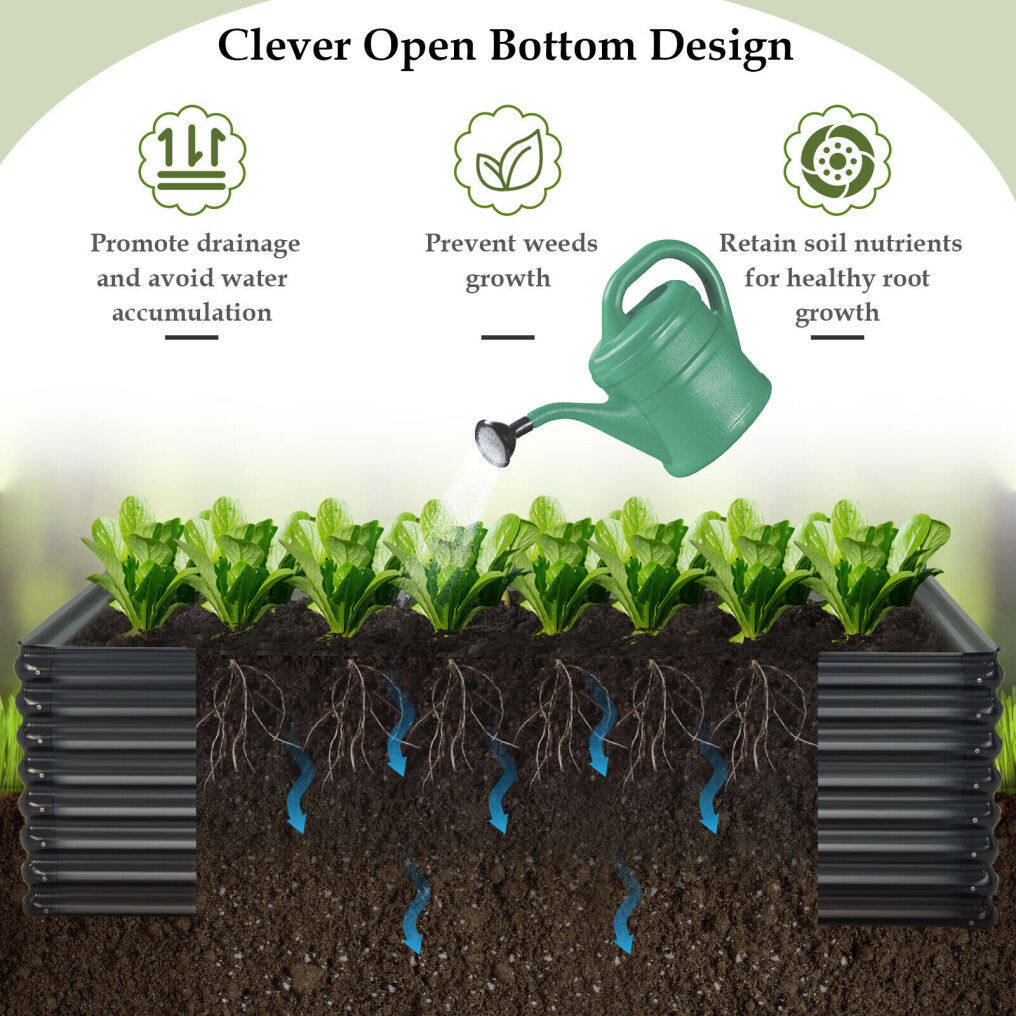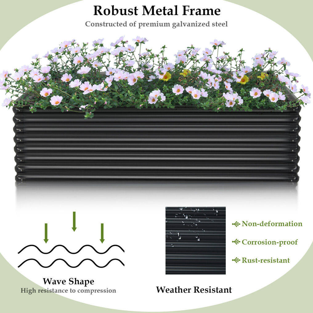 ● Durable Heavy Duty Frame: Constructed of premium galvanized steel, the elevated planter box is rust-resistant and will withstand the test of time better than wooden planters. In addition, the wave shape of the metal panels ensures high resistance to compression and makes this raised garden bed less prone to deform.