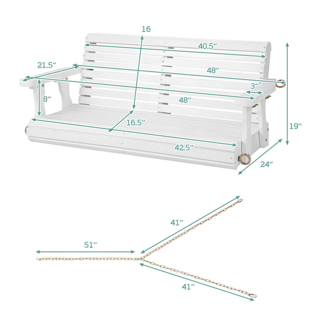 ● Reliable Metal Chains: The heavy-duty metal chains are used to connect the ceiling to this swing chair via reinforced snap hoops that make this swing bench come with strong loading capacity up to 600 lbs. And the rustproof chains are adjustable for great convenience.