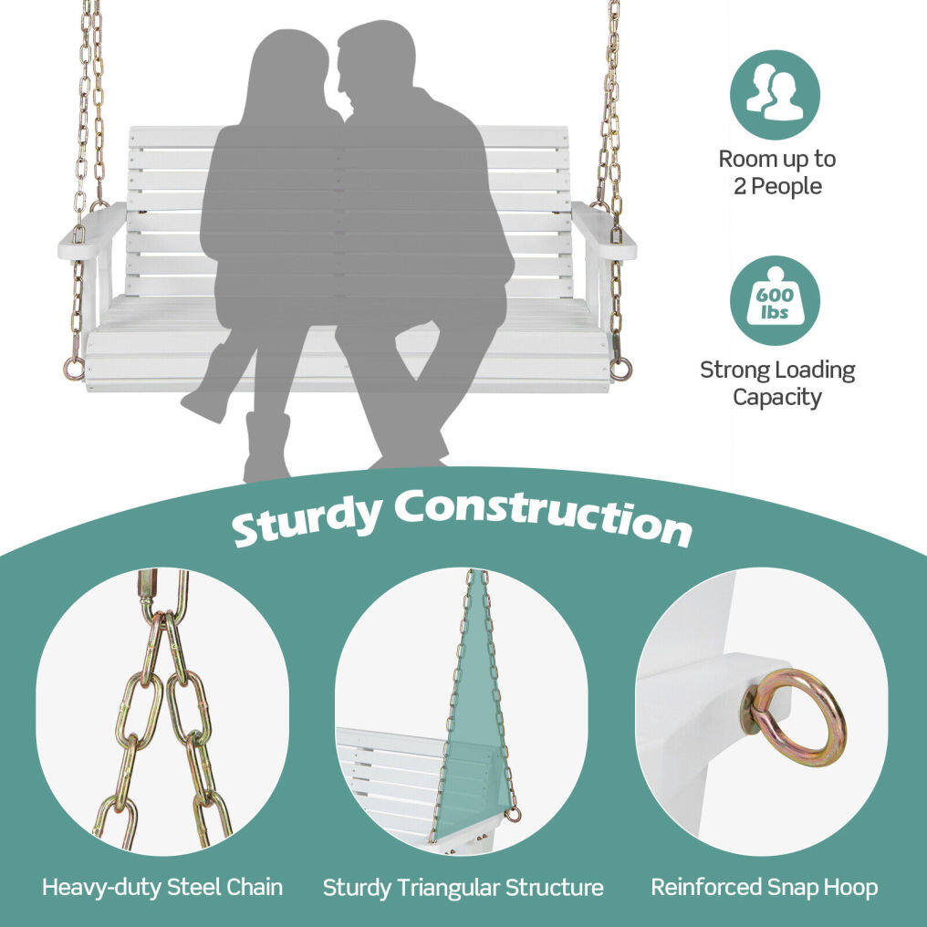 ● Solid Wood Material: Constructed of solid wood frame with PU painting, this 2-person porch swing is waterproof, burr-free, durable and stable to withstand outdoor changing weather. Moreover, the considerate slat design facilitates water drainage.
