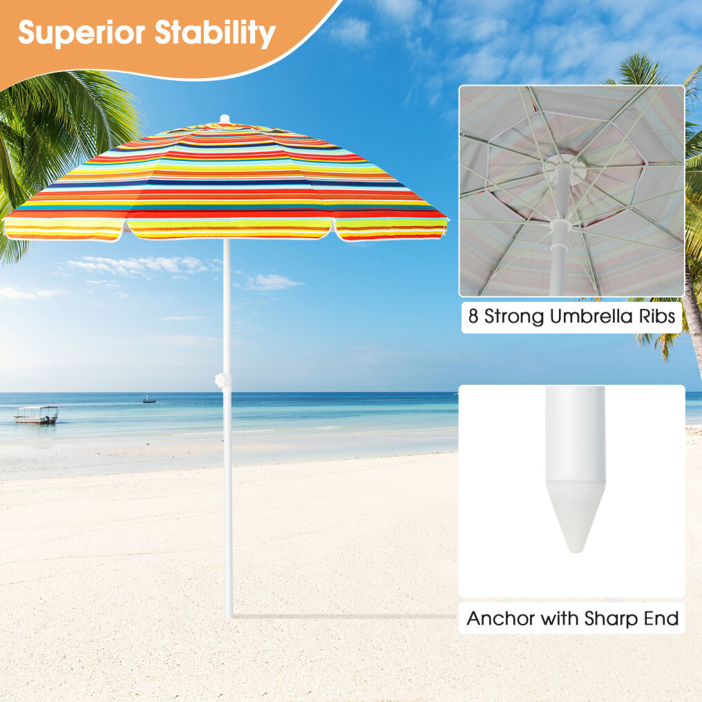 ● Sturdy and Stable Structure: The sunshade parasol comes with a detachable sandbag that can fill up to lbs of sand, enhancing wind resistance and making your umbrella safer. Besides, the umbrella is supported by 8 high-strength fiberglass ribs, ensuring good sturdiness and stability.