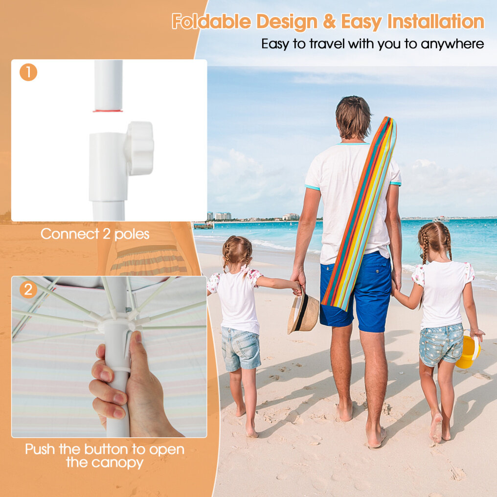 ● Foldable and Portable Design: The beach umbrella can be easily detached into 2 sections and there exists a carrying bag for storage, which is convenient to transport anywhere you want. And it only weighs 5 lbs. This portable sunshade umbrella is perfect for enjoying summer days on the beach or for other outdoor activities.