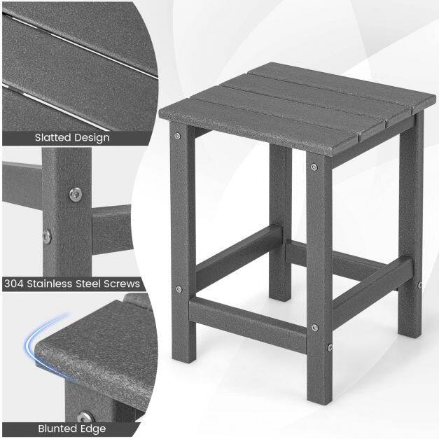 This outdoor side table will be a perfect mate for your Adirondack chair! With its 46.99cm appropriate height, this end table fits your chairs and sofas perfectly. And the square tabletop is capable of accommodating the needed items for easy access. What's more, the premium HDPE material makes this outdoor Adirondack table weather-resistant, fade-resistant, sun-protective and waterproof to withstand outdoor changing weather better. Meanwhile, it is recyclable as well to protect our future. Furthermore, this patio side table does not need painting, staining, waterproofing or other maintenance. Just clean it with water or soap.