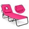 ● Removable Pillows and Face Hole: The tanning chair contains a face hole, a removable covering cloth and 3 detachable zippered pillows to inspire various using methods. When lying on the back, different pillows can be combined to offer you the comfiest position. If you are a tanning lover, the face hole will surprise you, as it can avoid struggling to breathe and enable you to read or drink during a sunbathing.