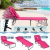 ● 5-Position Adjustable Backrest: The beach lounge chair has an adjustable backrest, which can be easily and stably fixed at 5 positions with a simple locking system. Thus, for individual needs, an ideal angle can be chosen by you to sit up for reading, recline for chatting, or directly lay flat to take a peaceful napping.