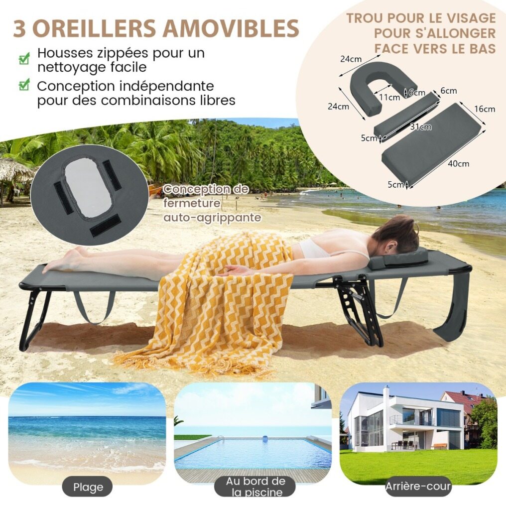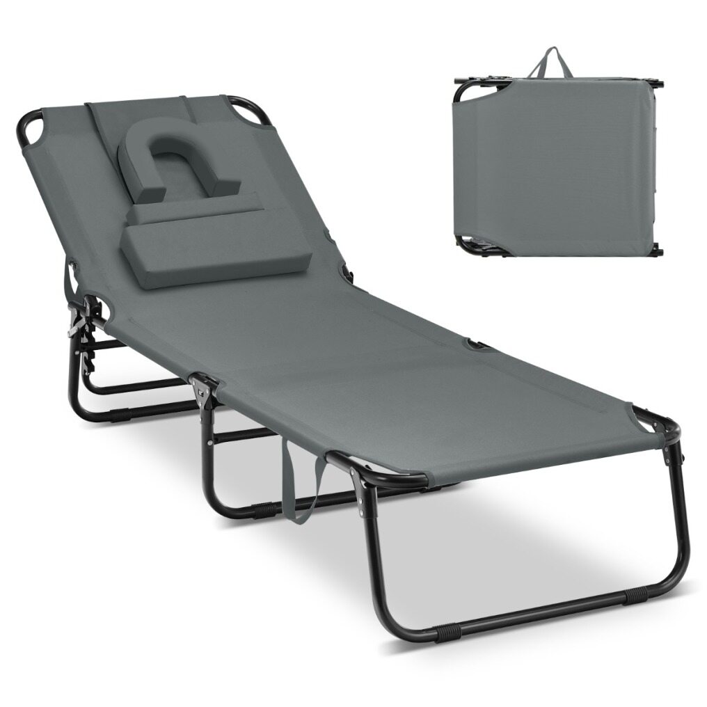 Face Hole & 3 Removable Pillows: The chaise lounge comes with a wide facing hole, so you can fully enjoy the sunshine while reading a book or chatting on the phone. Plus, the tanning chair has 3 pillows that can be taken off for free combinations. Also, they're considerately padded to offer a comfy touch.