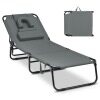The metal frame is covered with PE-coated oxford, ensuring both sturdiness & durability. Plus, oxford is also waterproof, tear-proof & wear-proof, perfect for outdoors. More surprisingly, the chaise lounge chair has a flexible back that can be set at 5 positions for napping, reading, chatting, eating, etc. You can also fold the rear leg for better relaxation. With the face hole, you could lie on your stomach and read a book or use a smartphone. The package contains 3 padded pillows, you can remove them or combine them freely to better fit your neck & shoulder. After use, just fold the tanning chair into a compact size of 73 x 63 x 16 cm (L x W x H). Then you could store it in a corner or easily carry it anywhere you want. If not used for a long time, please fold and store the tanning chair to avoid long-term exposure to the sun.