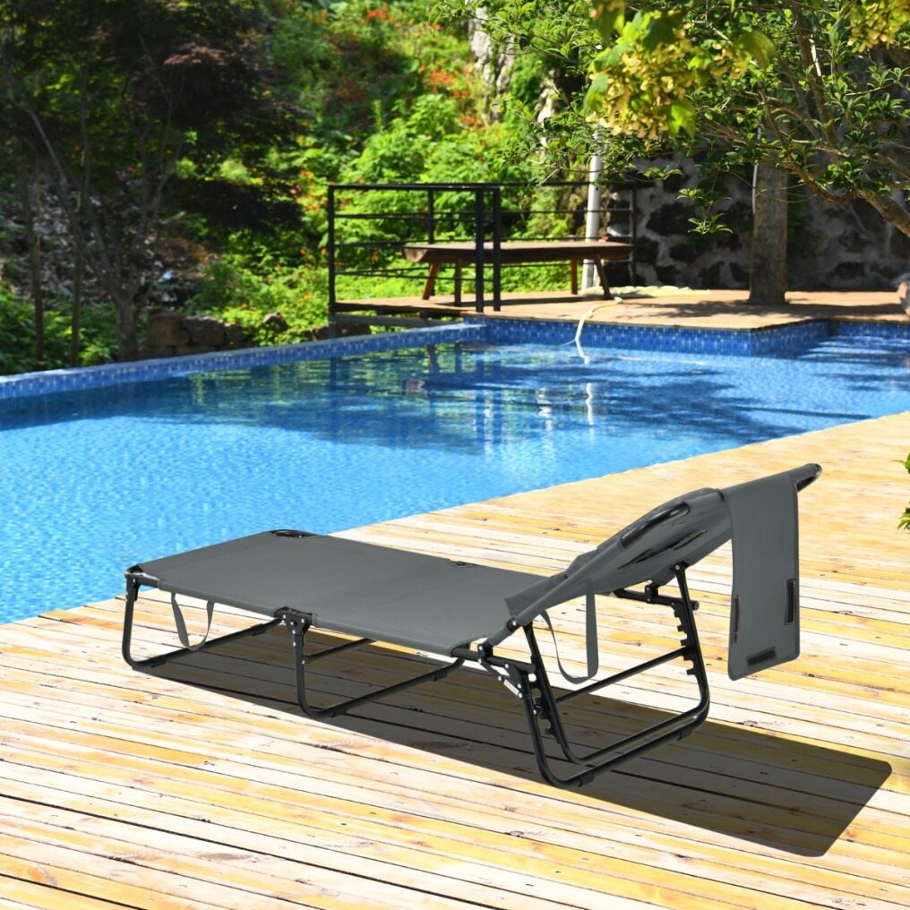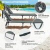 PE-Coated Oxford & Metal Frame: The chaise lounge chair consists of strong metal to get a very rigid structure with a load capacity of 160 kg. Undoubtedly, it could be a reliable choice for outdoors. Plus, PE-coated oxford is waterproof, wear-proof & tear resistant, so the tanning chair could last longer.