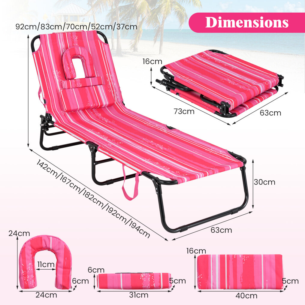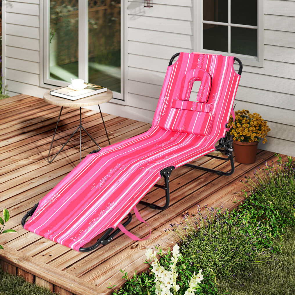 ● Removable Pillows and Face Hole: The tanning chair contains a face hole, a removable covering cloth and 3 detachable zippered pillows to inspire various using methods. When lying on the back, different pillows can be combined to offer you the comfiest position. If you are a tanning lover, the face hole will surprise you, as it can avoid struggling to breathe and enable you to read or drink during a sunbathing.