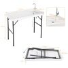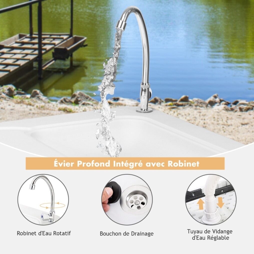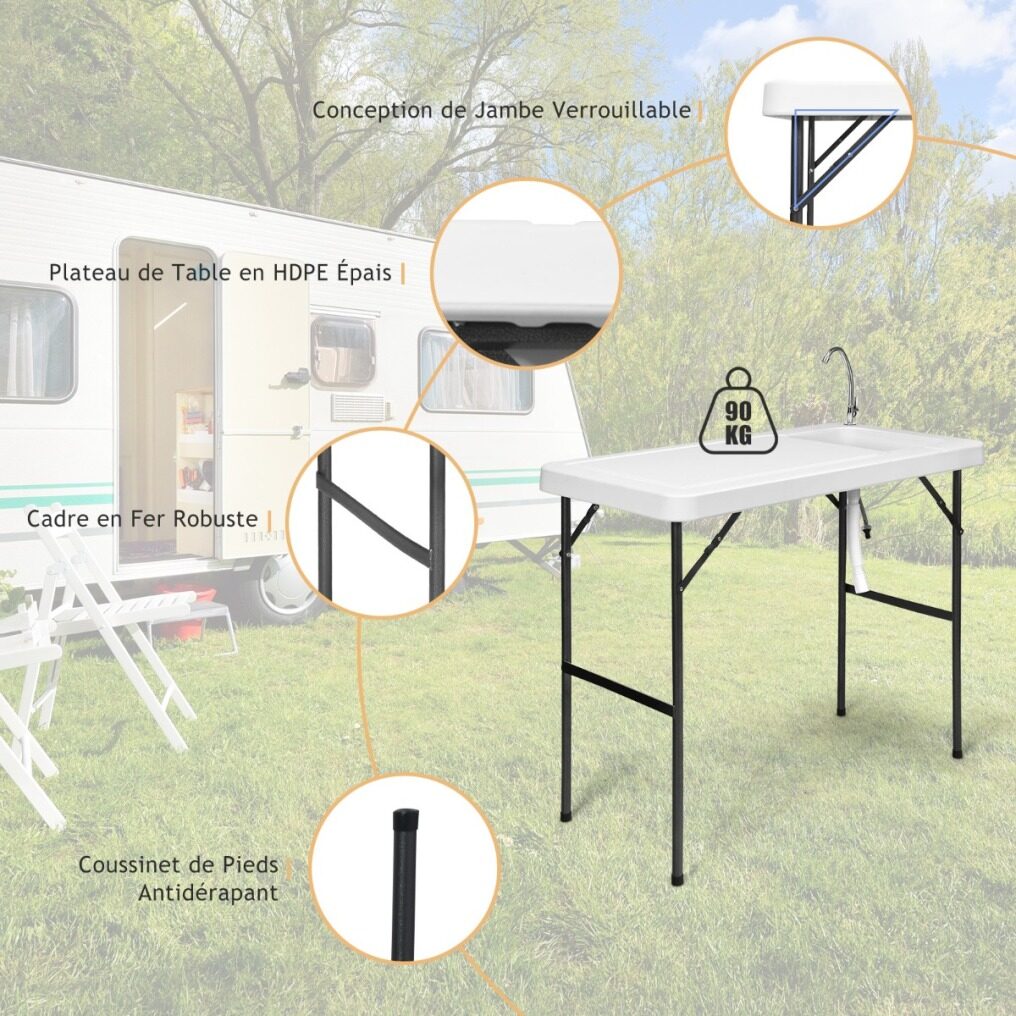 It can be used to clean different meats, fruits and vegetables. It can fold easily and lightweight so you could take it to camping, picnics and almost any kind of outdoor activity. It can be connected to a garden hose for a steady supply of fresh clean water. Table top is made of extremely safe sturdy plastic so you don't need worry the quality issue.