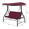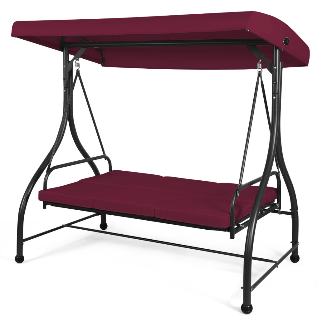 Enjoy the delightful time with your family in your garden or outdoor space relaxing on this porch swing. This swing has a solid and durable steel frame and can comfortably seat 3 people on its chic striped cushioned seats. The spacious seats provide a comfortable seating position, while the armrests on each side of the swing offer additional support. The backrest can be lied down and you can sleep on it as a bed. The canopy of the porch swing is removable and adjustable, with this weather-resistant porch swing, you can enjoy the happy hour for all day long. It is perfect for gardens, patios and backyards, while also providing a beautiful accent for commercial properties such as hotels and cafes. The smooth finish makes it very easy to clean and maintain.