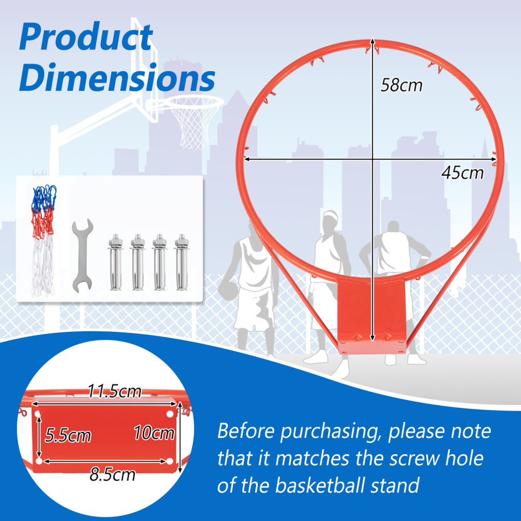 ● 18-inch Suitable Diameter: Featuring an inner diameter of 18 inches, this basketball rim offers a tailored fit for your setting and elevates your gameplay experience. Whether you're upgrading an existing hoop or creating a new play area, this rim is the ideal choice.