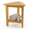 ● Corner Shower Stool: Measuring a compact 17" x 16" x 18" (L x W x H), our small shower stool is ideal for tight spaces like bathroom corners. Its height is comfortable to sit on, and ergonomic for grooming tasks like shaving legs, applying body lotion, or trimming toe nails.