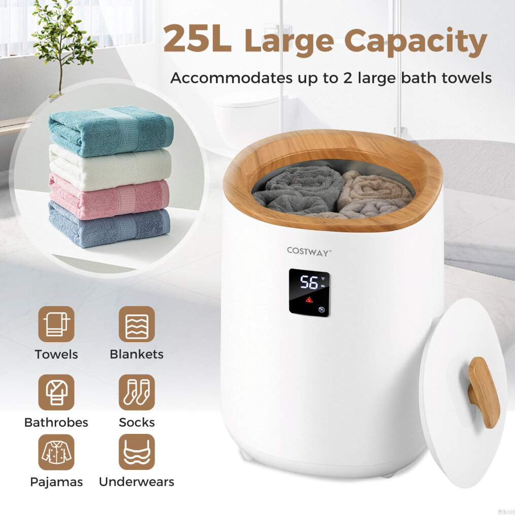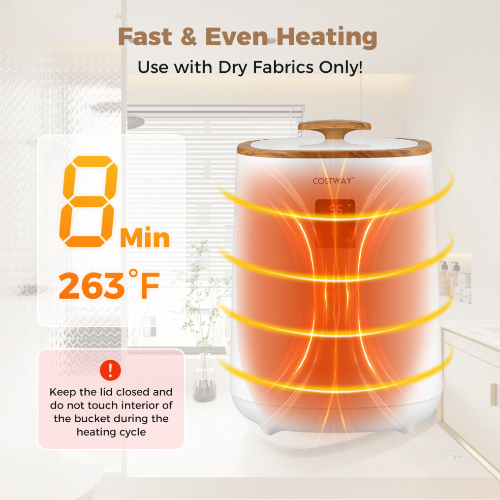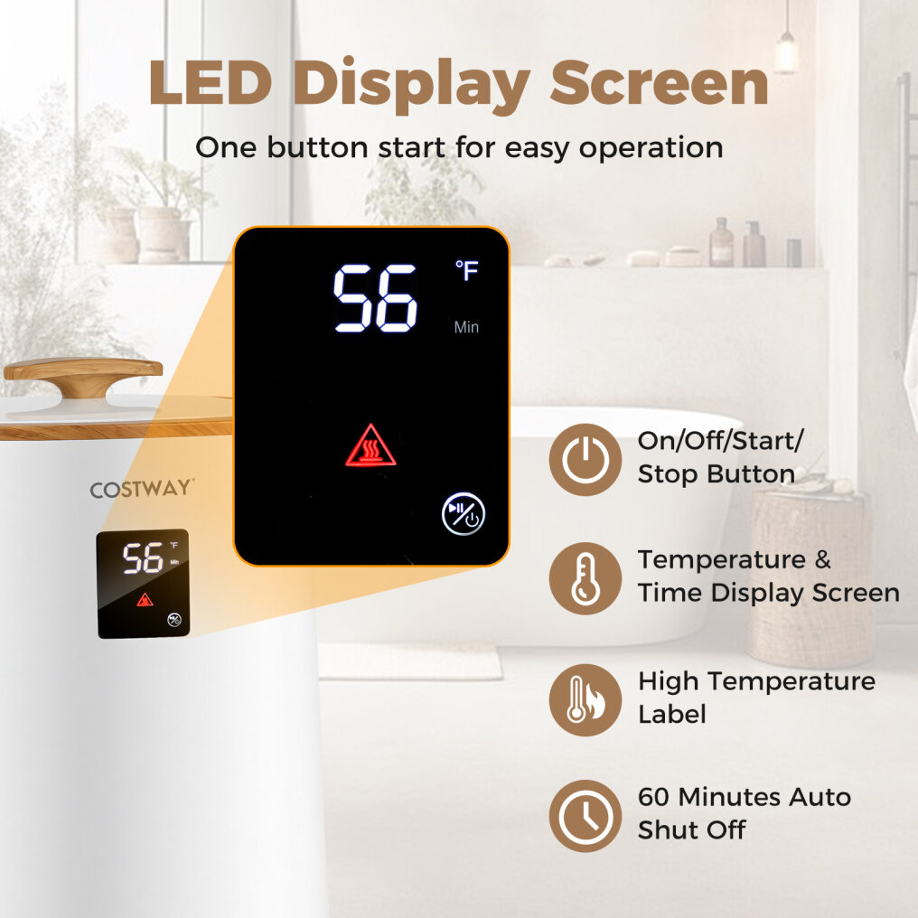 ● Effortless & Safe Towel Warming: Operating the towel warmer is a breeze - simply place your towels inside, close the lid, and press the button. Featuring a user-friendly LED display, this warmer offers clear temperature and time settings. The 60-minute auto shut-off function and overheat protection ensure safety and energy efficiency during use.