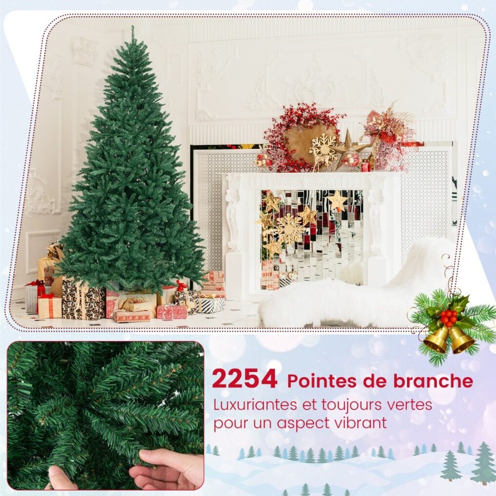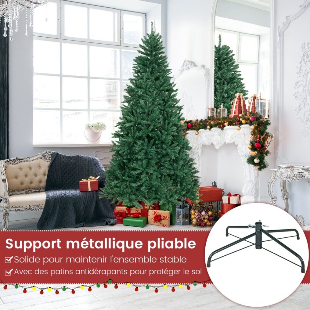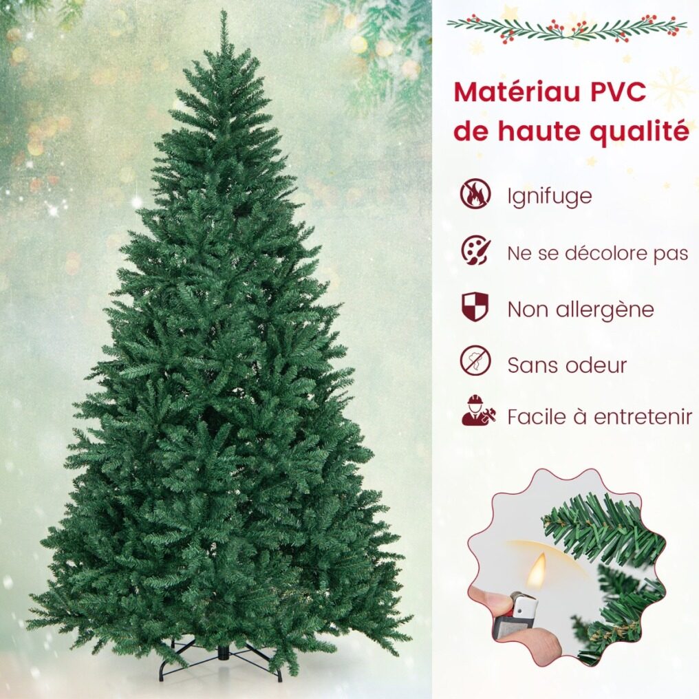 Our lush Christmas tree with its branch tips, in 2 different shapes, create a vibrant centerpiece. The branch tips are designed to mimic a real winter tree. Made of PE and PVC materials, it is flame retardant, anti-fading and non-allergenic, for durability. With its hinged frame, it automatically extends its branches. Sturdy and placed on a metal stand with 3 reinforced bolts, it decorates any room without wobbling. Its non-slip pads ensure floor protection, perfect for home, school or office.