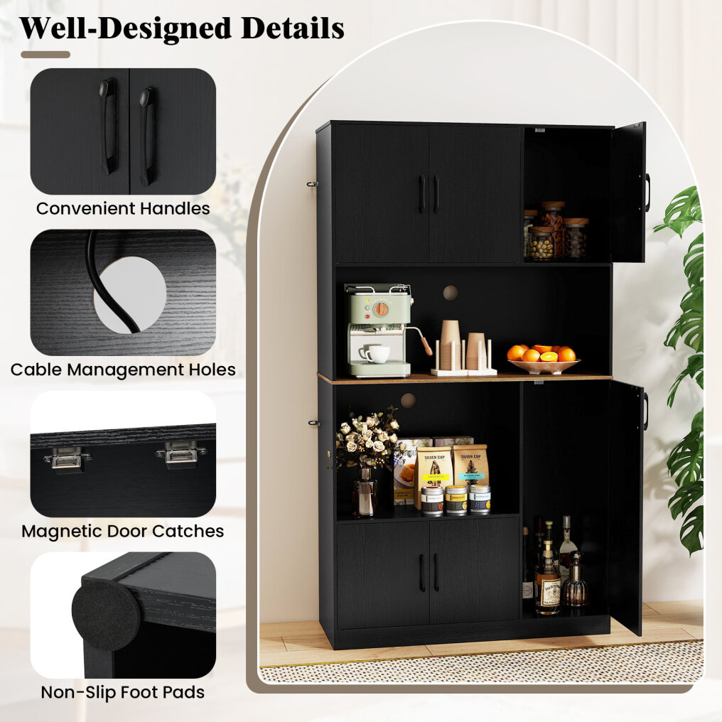 Built-in Power Strip: This tall pantry cabinet features a built-in power strip on the countertop, complete with 2 AC outlets, 1 USB port, and 1 Type-C port. The power outlet is perfect for charging devices right where you need them.