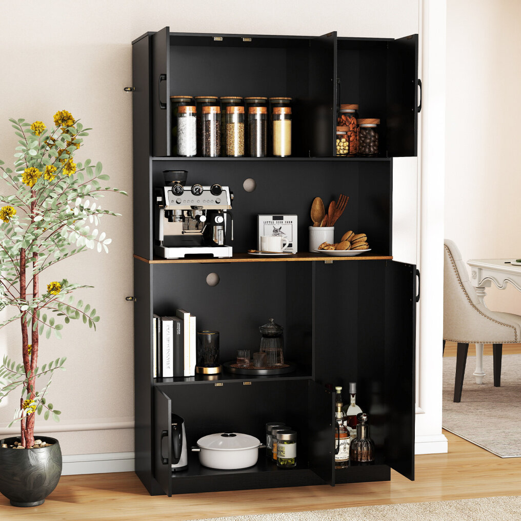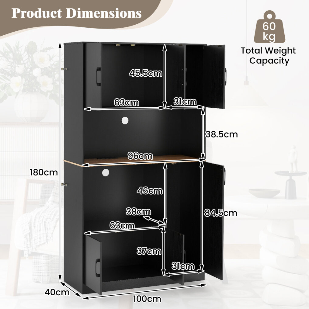 Versatile Home Organizer: With stylish and practical design, this 180 cm tall pantry cabinet serves as an ideal organizer for kitchens, dining rooms, and living rooms. Enhance home organization and aesthetic appeal with this modern storage solution.