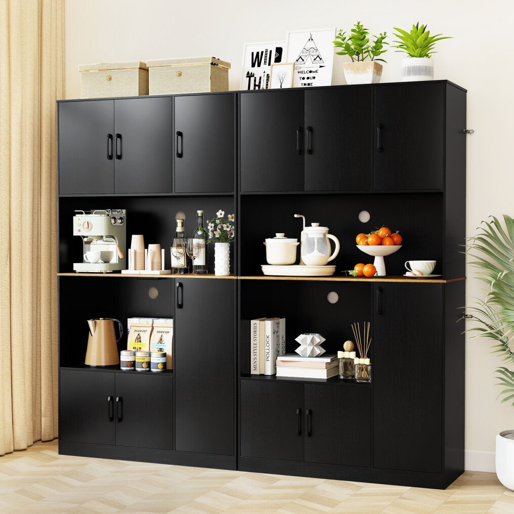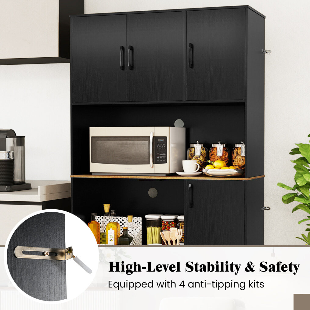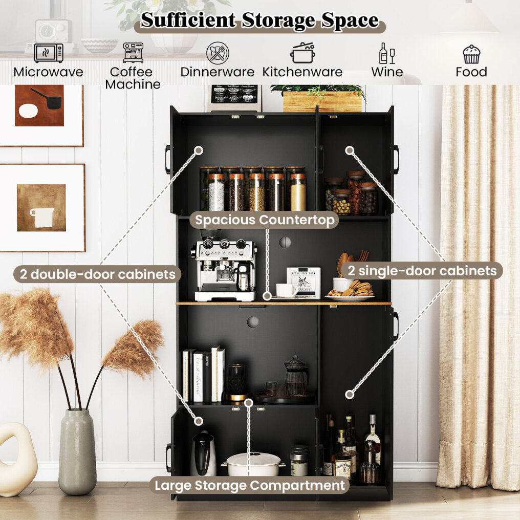 Sufficient Storage Space: Designed with 2 double-door cabinets and 2 single-door cabinets, this kitchen cabinet offers space for food, dinnerware, kitchenware and wine. The spacious countertop and large storage compartment perfectly accommodate microwave, coffee machine, and other kitchen appliances.