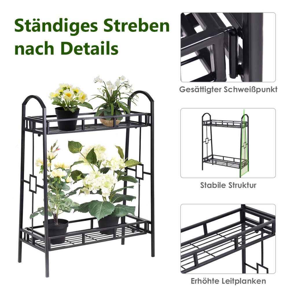 Give your home, deck, or patio the perfect combination of classic style and natural beauty with this charming planter stand. It's durable, stable, and easy to remove. The 2 tiers of shelves provide attractive displays of potted flowers. The black finish and neat design will add an elegant and stunning display to your plants. If you are looking for a plant stand, it will be your excellent choice.