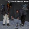 It comfortably holds 2 people with ample fishing room. It has two layers of the window in oxford and transparent PVC. If you want to be hermetic, just install this two layers. If you want to allow light in but keep the air out, just install the transparent PVC one. But if you need to ventilate, just detach the windows. Besides, portable design well fits into a bag for easy carrying on your back.