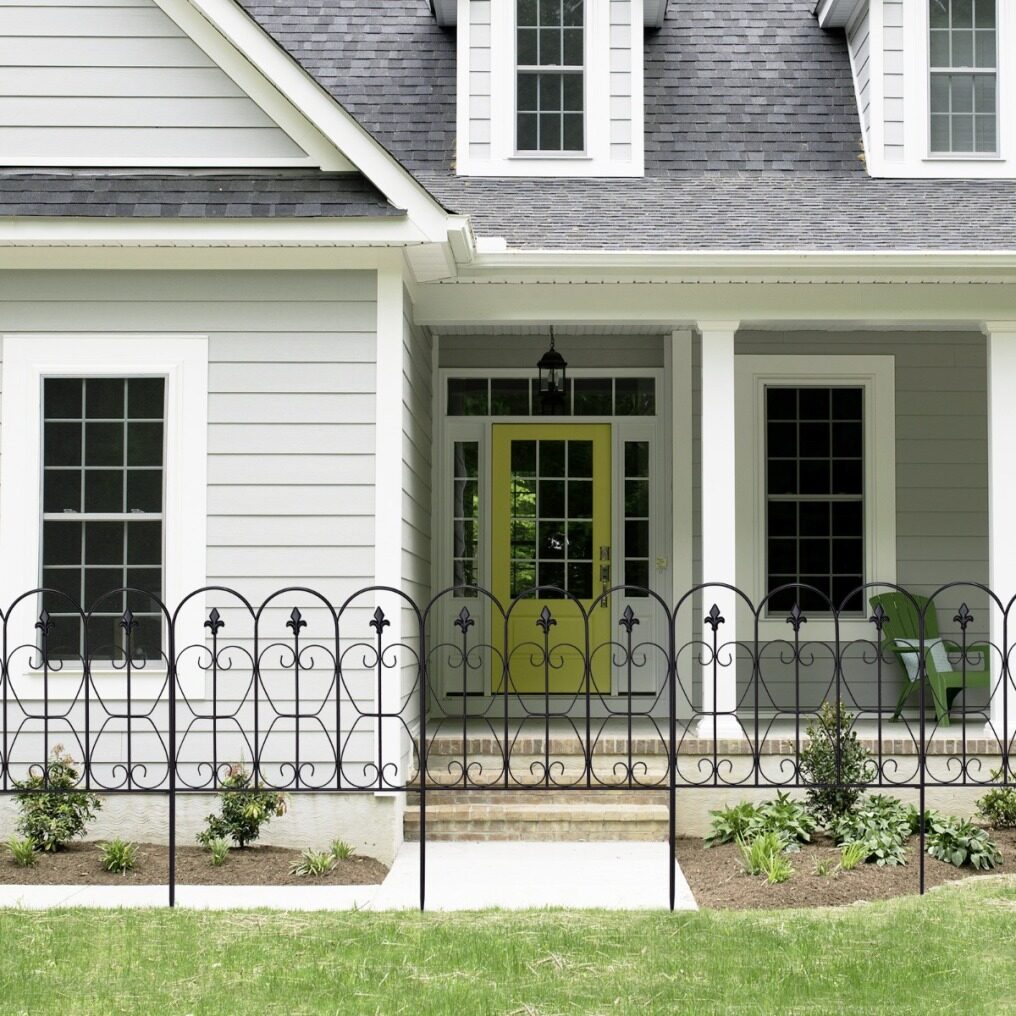 Charming Decor and Timeless Elegance: The elegant curved iron fence creates a charming border around the plants or driveway. The lovely 3 arches at the top of this fence combine with the scrolls beneath them to form a beautiful fleur-de-lis shape. The black finish and vertical lines add timeless and classic elegance to mark your garden path.