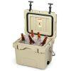 【Durable Enough for Outdoor Activity】This cooler made up with premium PE and PU which is shatter-resistant and provides superior insulation and strength. Besides, integrated khaki body with padded stainless steel handle, our outdoor cooler is aiming to an in-style and practical use. Besides, comes with drain plug to empty out the water.