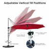 Made of a strong thick aluminum pole and 8 sturdy ribs, the patio offset umbrella is durable enough which has a long lifespan. Plus, the premium 240gsm yarn-dyed fabric canopy is fade-resistant and water-proof while offer well sun protection. Besides, for maximum convenience, the offset umbrella can rotate 360 degrees to your preferred position by simply stepping on the foot pedal and turning the pole with your hands. It is worth mentioning that this round offset umbrella can adjust tilt freely and block the sun from various angles. More, the patio umbrella with a cross base makes your umbrella stay firm. By the way, the operation and assembly of the patio umbrella are simple.