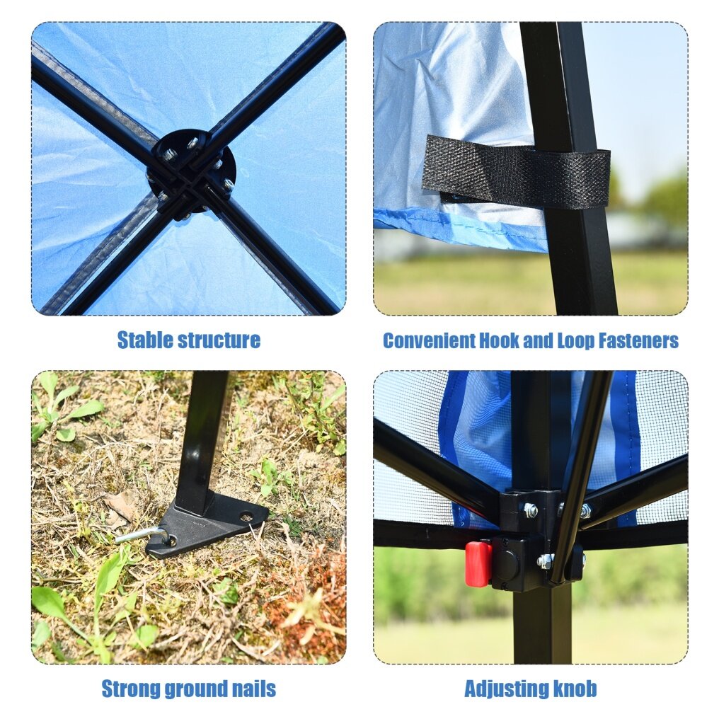 Portable with Backpack: Comes with a thick backpack, the tent can be folded and stored in the bag. The net weight of the canopy is 7.5kg and its folded size is 210cmL x 210cmW x 210cmH. Some of accessories are suitable to be stored in the side pocket. It is great to carry the tent when you go hiking, surfing, camping and other outdoor activities.