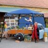 Are you finding a foldable canopy to provide shelter for some outdoor activities? Our folding tent which can be conveniently stored in a portable bag to carry and perfect for many outdoor activities like parties, camping, flea markets etc. Constructed of powder-coated solid steel, the frame of the tent is rust-resistant and can provide long time service. And the stakes which come with tent can also add stability of tent. Whether the weather is rain or shine, this outdoor shelter is sure to make your outdoor gathering pleasant. Under the canopy, there is enough space for you to place furniture like deck chair, table and loveseat to enjoy leisure time with your family or friends.