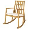 ● Sturdy Acacia Wood Structure: Crafted from selected acacia wood, the patio rocker features high resistance to abrasion and deformation, ensuring long-lasting using time. And the bottom rocking base with a triangular structure makes the chair rock in a smooth and balanced way, and able to withstand the weight of 350 lbs.
