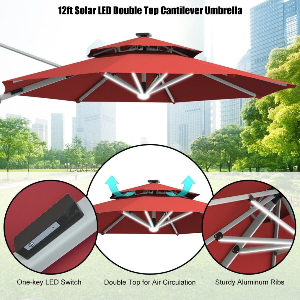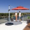 It is made of powder-coated aluminum frame and 8 heavy-duty ribs, which are more durable and sturdier to use longer. Double top umbrella features a wind vent for better air circulation to provide a cool environment under the umbrella.