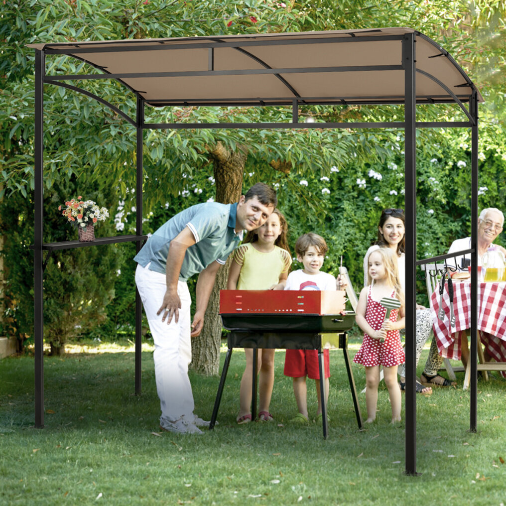 Stylish Design for Wide Use: Combining aesthetics and functionality, this grill gazebo with classic style can be matched with any outdoor style. The fashionable arched canopy design is very easy to attracts people's attention. What’s more, the practical gazebo is perfect for barbecue, picnic, party or rest.