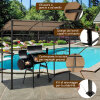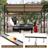 How to barbecue on hot or rainy days outdoors? Our grill gazebo can help you solve this problem. With sturdy powder-coated metal frame, the gazebo is rustproof and durable for long-term use. Besides, the reinforced structure and 8 anchors ensure that it remains stable in windy conditions. The canopy is made of polyester material with PU coating, which is weather-resistant and flame-retardant so that you can barbecue safely. The storage shelf and 5 hooks are designed for convenience use. You can hang or place a variety of tools, food, and beverages. The gazebo in a stylish design matches different outdoor styles. You can use it for BBQs, parties, and resting with your family and friends. This practical grill gazebo is a good choice for you!