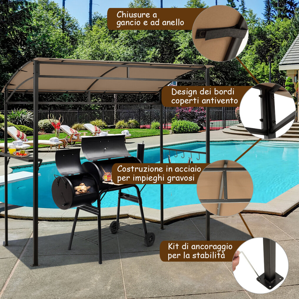 Sturdy and Durable Steel Frame: With a sturdy powder-coated steel frame, this grill gazebo ensures durability and rust resistance for long-term use. Besides, the reinforced beams enhance stability, which is perfect for outdoor use. Importantly, two anchors are provided for each leg to make it steadier.