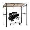 How to barbecue on hot or rainy days outdoors? Our grill gazebo can help you solve this problem. With sturdy powder-coated metal frame, the gazebo is rustproof and durable for long-term use. Besides, the reinforced structure and 8 anchors ensure that it remains stable in windy conditions. The canopy is made of polyester material with PU coating, which is weather-resistant and flame-retardant so that you can barbecue safely. The storage shelf and 5 hooks are designed for convenience use. You can hang or place a variety of tools, food, and beverages. The gazebo in a stylish design matches different outdoor styles. You can use it for BBQs, parties, and resting with your family and friends. This practical grill gazebo is a good choice for you!