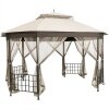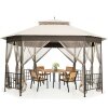 ● Large Space and Detailed Instruction: The 12' x 10' top offers a wide range of space to accommodate a group of people for social gathering. Besides, all parts and hardware in the package are clearly marked, so the patio gazebo can be assembled quickly and effortlessly by simply following the instruction. Canopy Shelter Double Top W/Netting Sidewalls