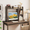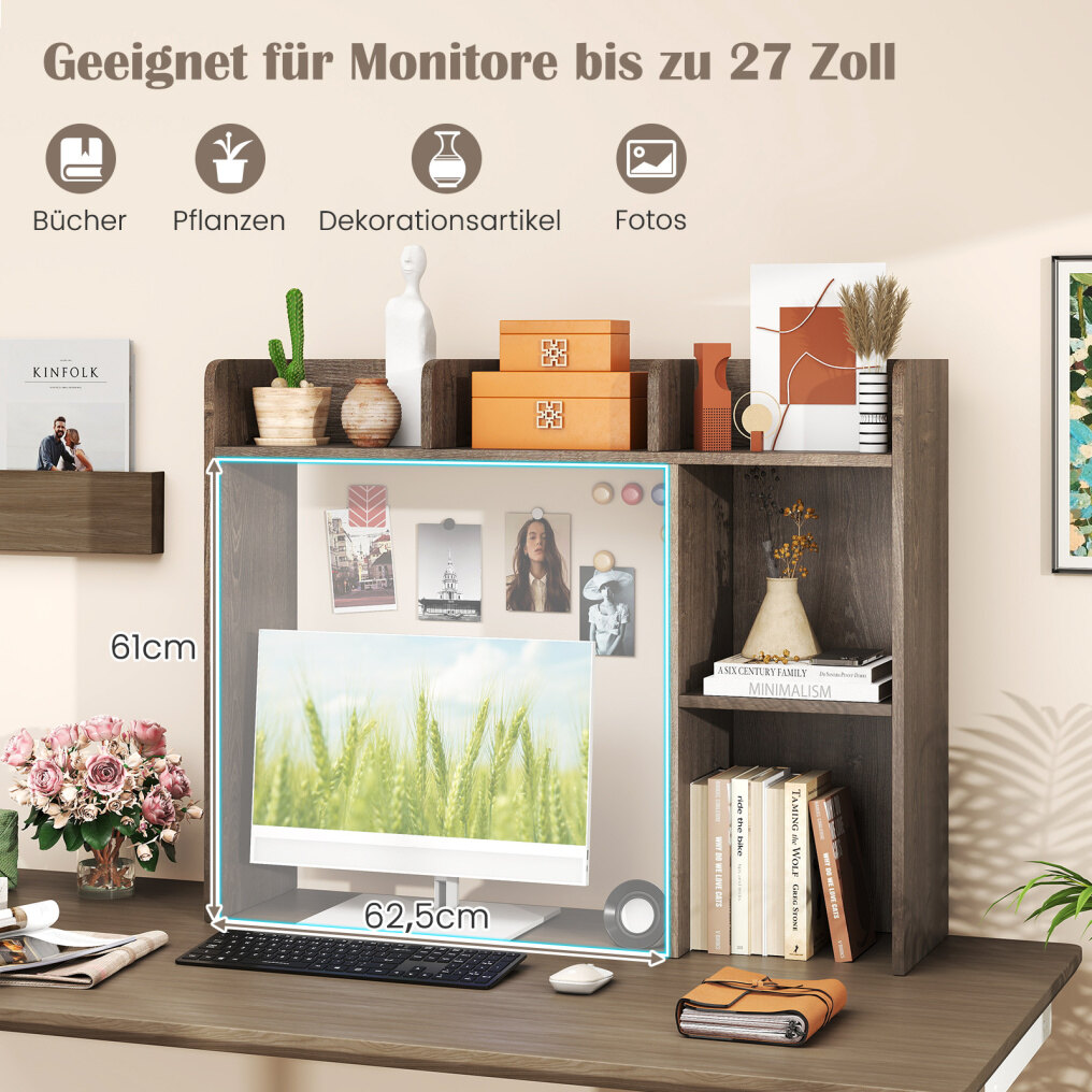 Provides space for up to 27-inch computer monitors: This desktop bookshelf is a practical addition to your computer desk, as the large open-back compartment accommodates monitors up to 27 inches. You can have more storage space without compromising the functionality of your computer desk.