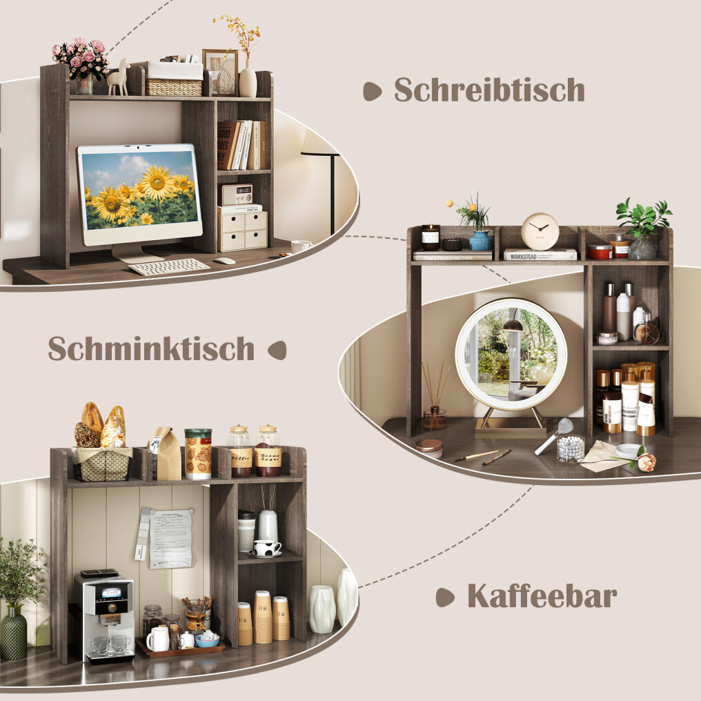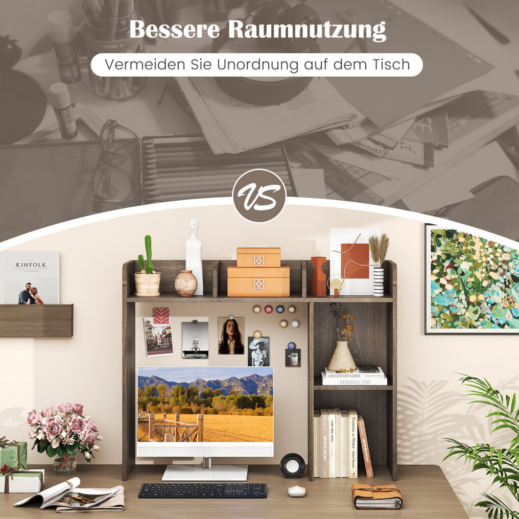 Classified and vertical storage space: To tidy up your tabletop and make optimal use of the space, the tabletop stall offers 3 upper shelves and 2 large side compartments in which books, ornaments, calendars, plants and other small items can be stored.