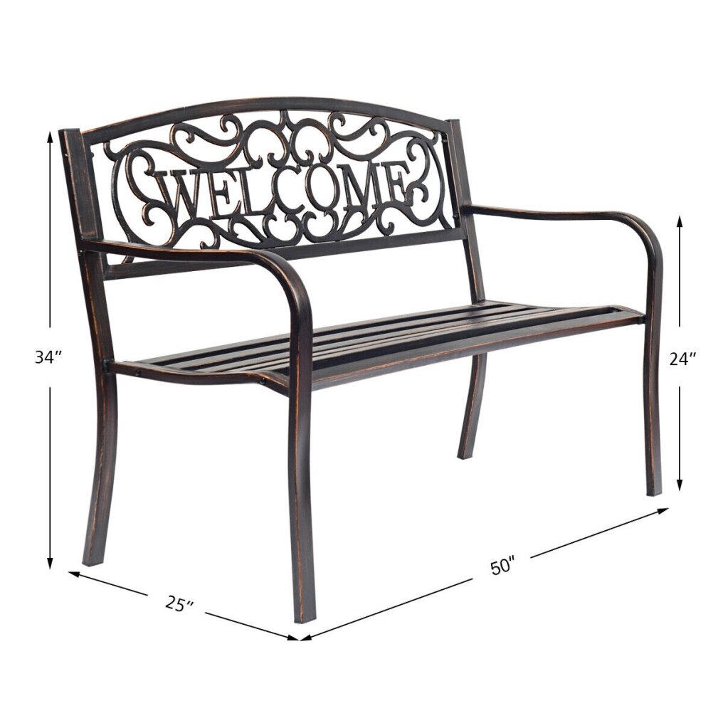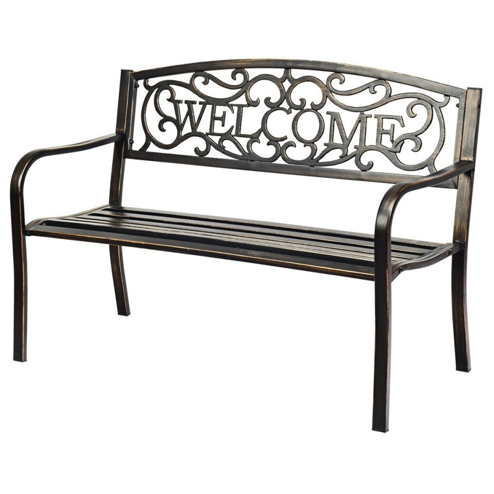 On seeing the "welcome" carved on the backrest, your family and friends will surely feel warm and relaxed. With an armrest and seat board fits your body line, you and your family can sit on the beautiful bench comfortably, enjoying the peace and natural beauty. Crafted with durable metal frame and fine coating, this park bench is able to withstand all weathers for your long-time use.