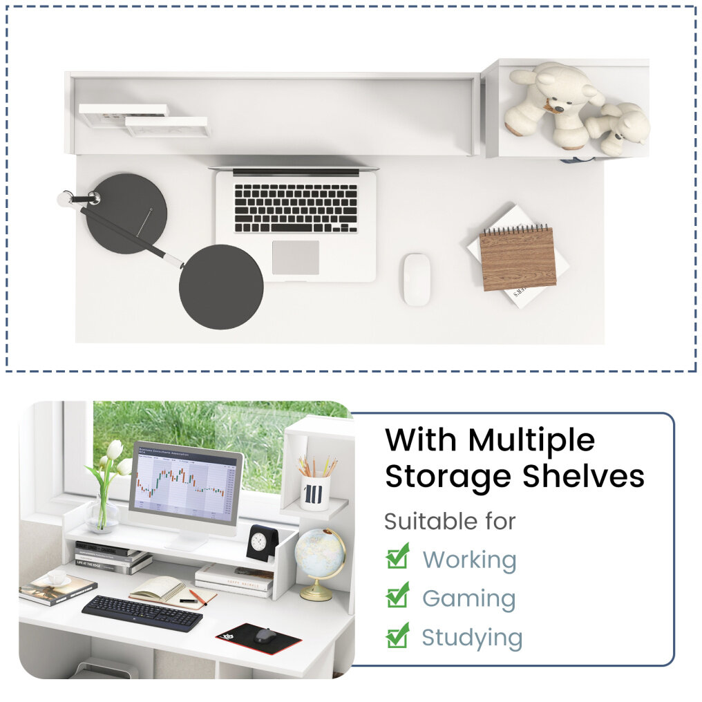 ● Maximize Workspace Utilization: Integrated with a writing desk, a storage bookshelf and a tabletop hutch, the computer workstation is a real space-saver that takes up less floor space and offers a perfect solution if you require large storage capacity.