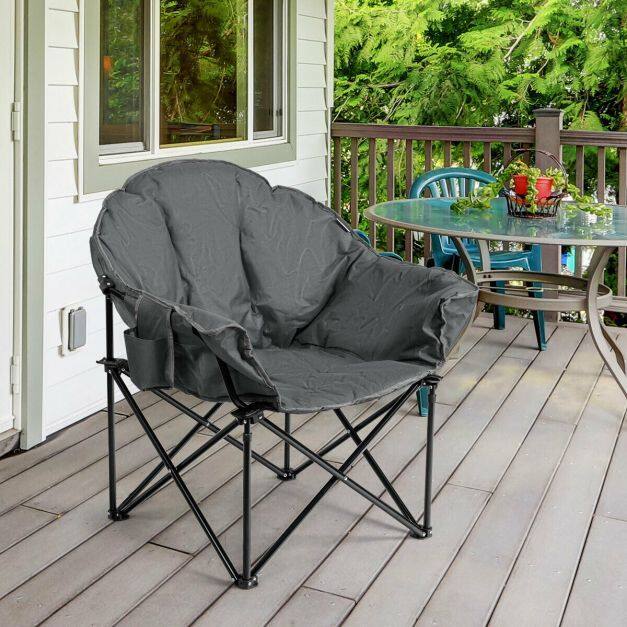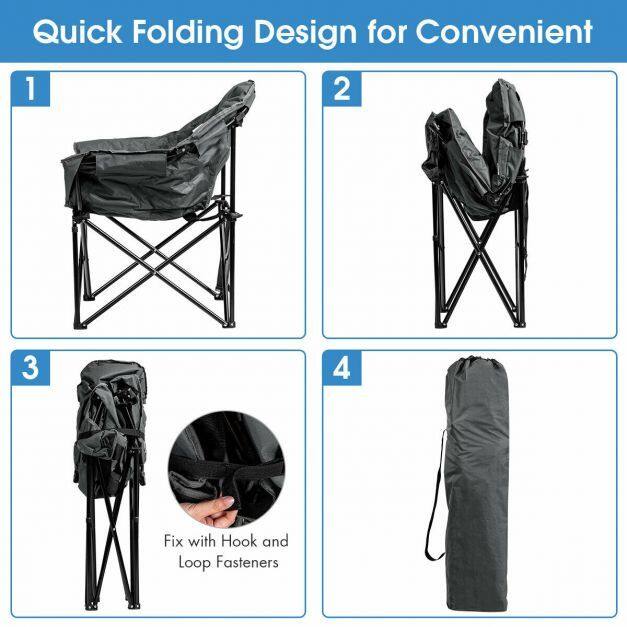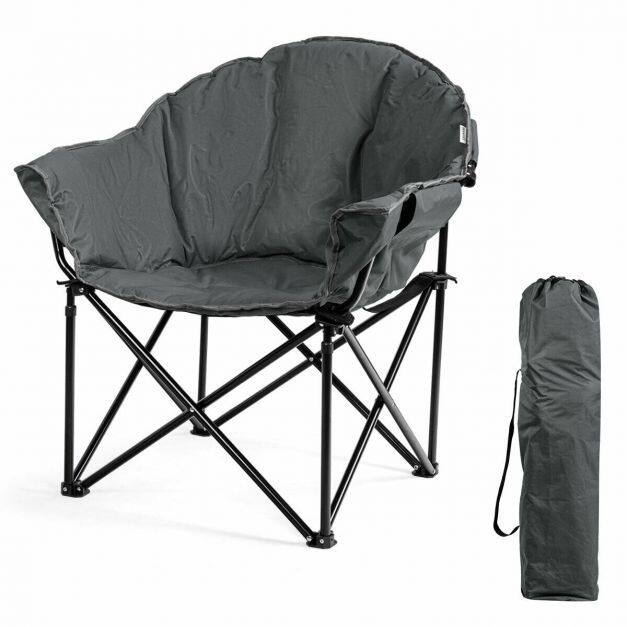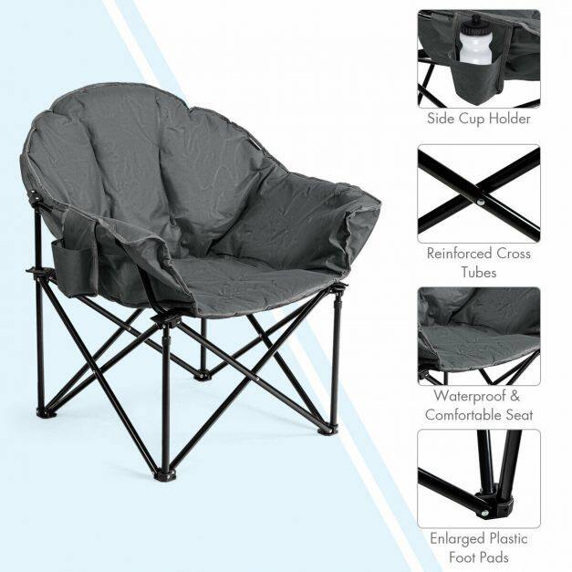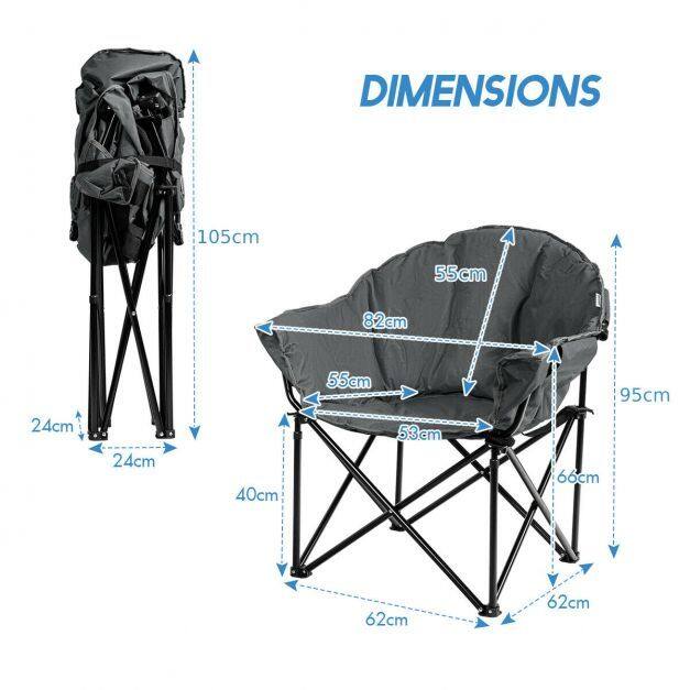 The breathable oxford cover with cotton interior provides a soft and comfortable sitting experience. The foldable design is so convenient that you can pop up and close this camp chair in seconds. And, this chair can be easily put in the included carrying bag for storage and transportation. Featuring a side cup holder, this chair is suitable for any occasion, such as picnics, camping, fishing, and more.