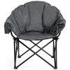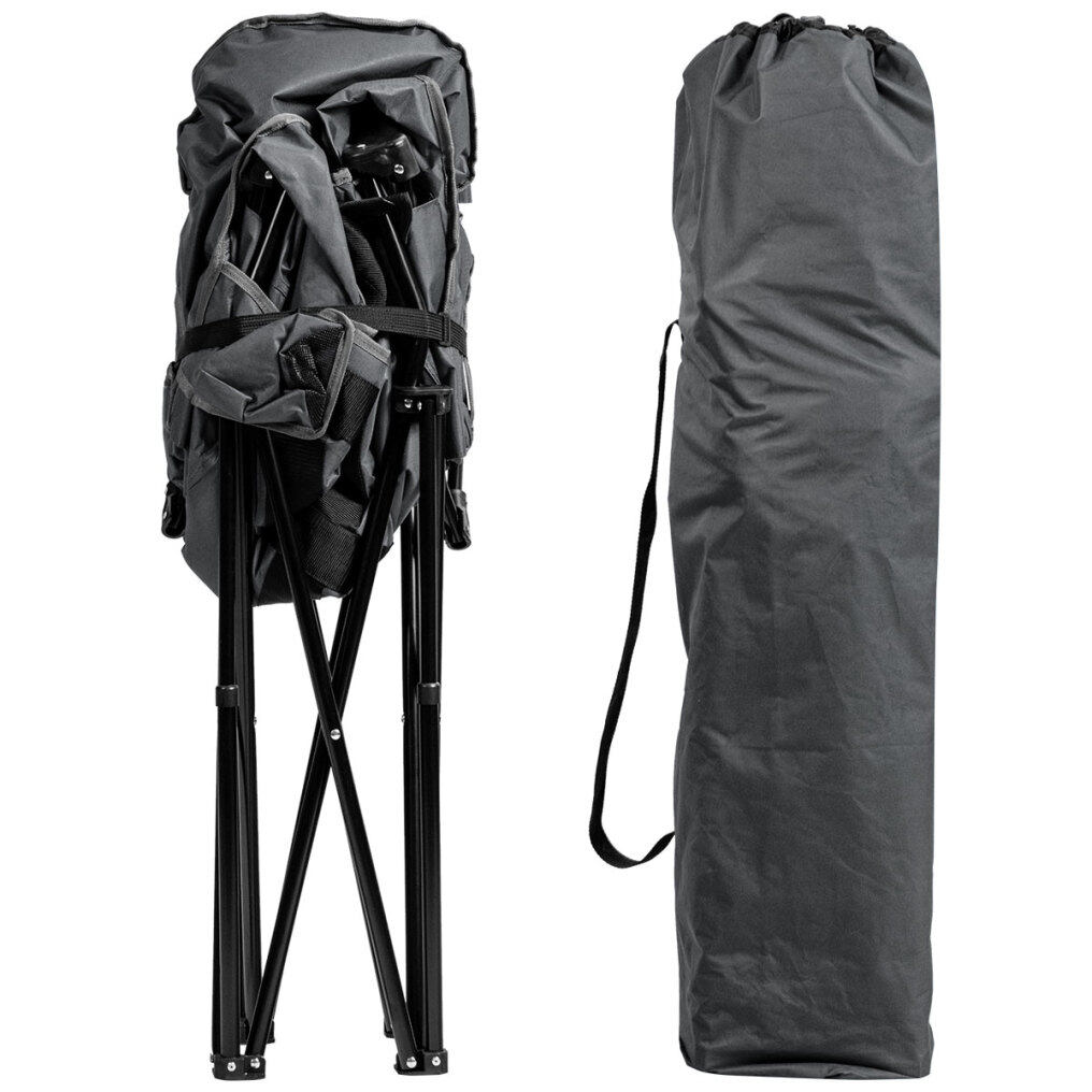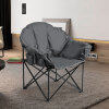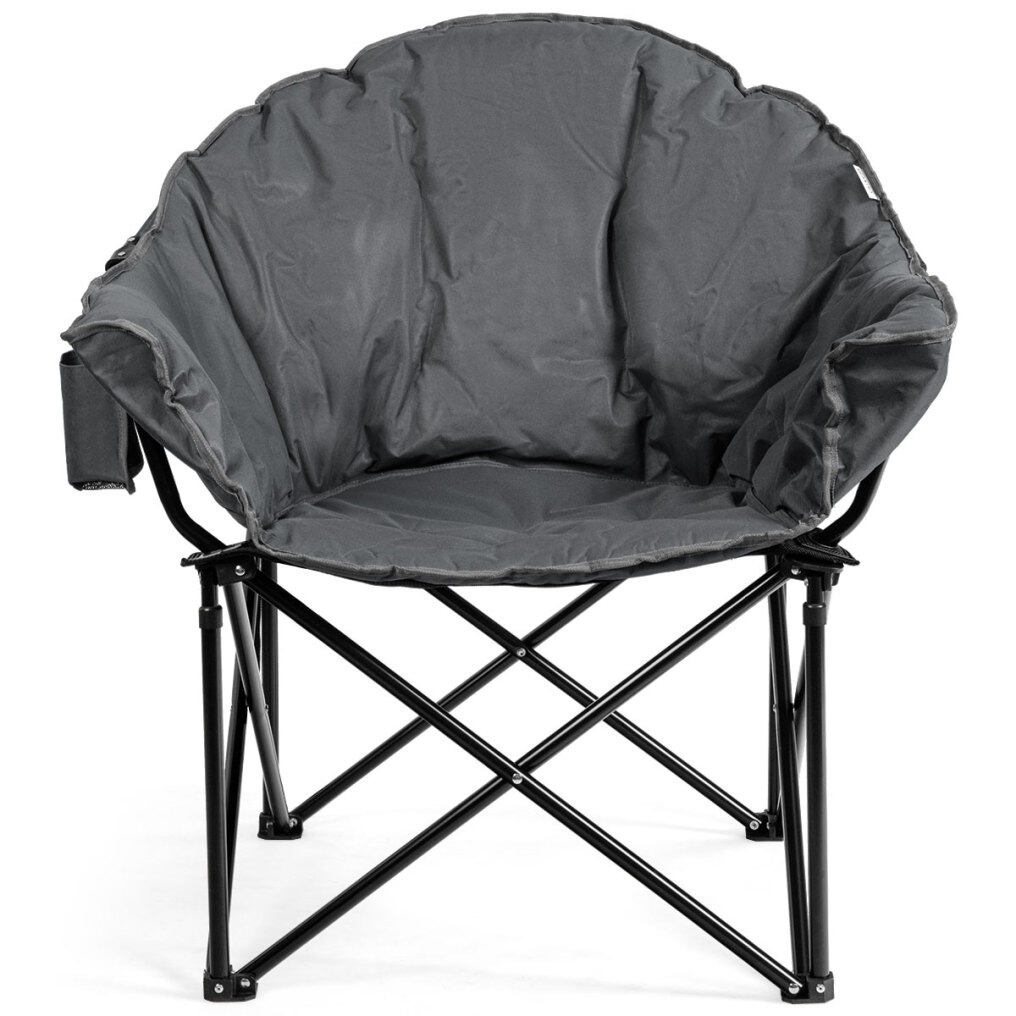 The breathable oxford cover with cotton interior provides a soft and comfortable sitting experience. The foldable design is so convenient that you can pop up and close this camp chair in seconds. And, this chair can be easily put in the included carrying bag for storage and transportation. Featuring a side cup holder, this chair is suitable for any occasion, such as picnics, camping, fishing, and more.